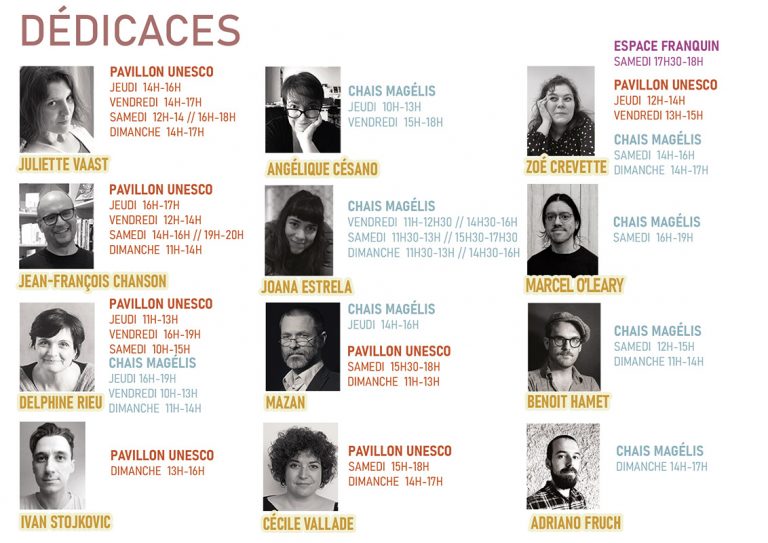 - On reste sur une bonne moyenne avec 12 auteurices en dédicace pour Le Grand Off, avec une belle parité, et les illustratrices en vedette pour les expo, atelier et lecture musicale !
