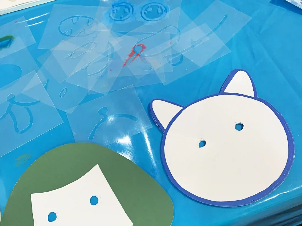 Déplacement en classe de l’intervenant.e avec impression au préalable des masques et pochoirs découpés :