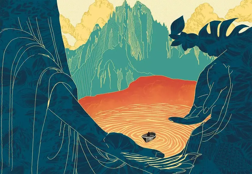 Le temps d’une nuit, seul sur sa barque, un pêcheur part à la rencontre de Mano la bleue, femme requin aussi attirante que menaçante. Sous la plume de l’autrice, la tendresse et la sérénité des nuits hawaïennes où les poissons s’agitent parmi les étoiles laissent place à une partie de chasse féroce, tels les cyclones qui ravagent l’île quand vient la saison des pluies. Inversant les codes, ce sont ici les hommes, attirés par l’odeur du sang qui font office de bêtes sauvages.