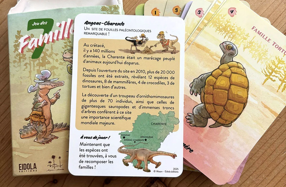 Notre jeu permet de découvrir les différentes espèces d’animaux préhistoriques trouvés sur le site de fouilles paléontologiques d’Angeac-Charente. Vous pourrez réunir les familles Ankylosaure, Ornithomimosaure, Tortue, Mégalosaure, Stégosaure, Sauropode et Crocodile.