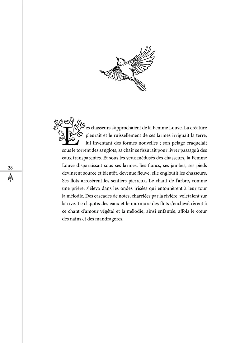 Nuit et jour, ses branches s’unissent au vent et composent des chansons d’amour qui attirent la Garulfe, femme mi-louve mi-humaine, poursuivie par des chasseurs en quête de sa fourrure…